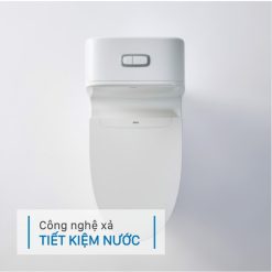 Bồn cầu được thiết kế vành rim với bề mặt hoàn toàn trơn láng, dễ dàng vệ sinh và hạn chế sự bám bẩn. Mức xả siêu tiết kiệm nước với hai mức 4.5L/ 3.0L.