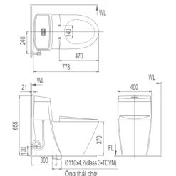 Bản vẽ kỹ thuật Bồn cầu Inax AC-909VRN-1